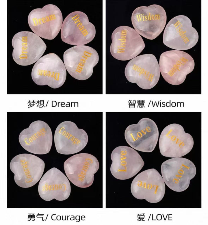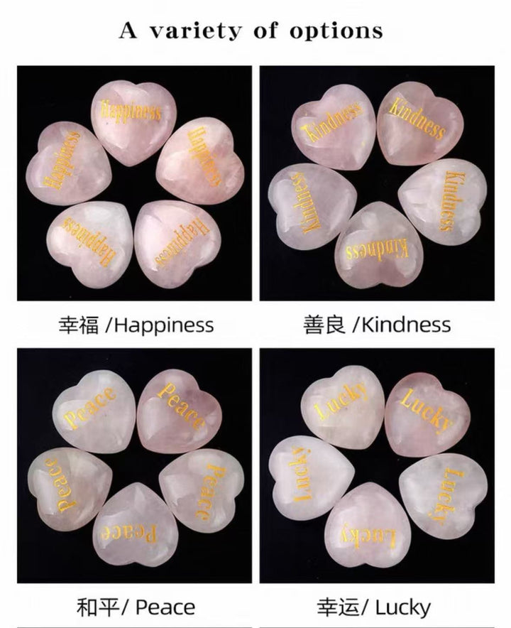 happiness(one), kindness, peace, lucky, dream, wisdom, courage, love, healing, wealth, gratitude, belief, strength, trust |